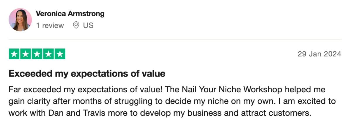 But here's the amazing thing - all this can be solved by working with us on our three unbelievably powerful questions to Nail your Niche in MINUTES.