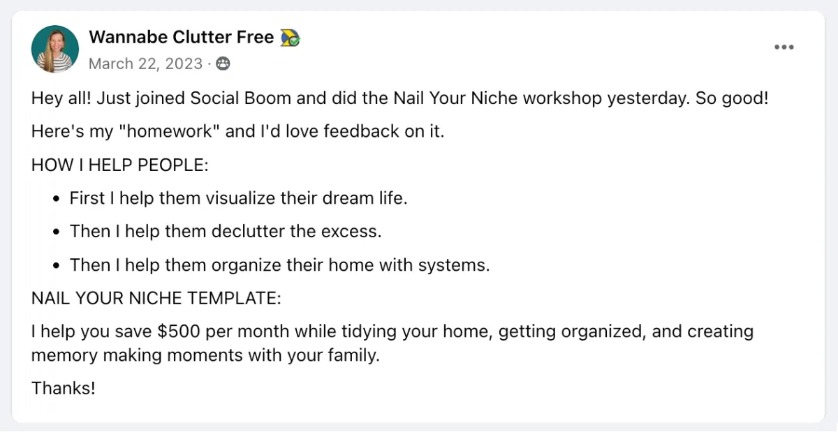 Why? Because they're focussed on becoming known for something specific. The industry calls that 'niching down', but it's really just being intentional with how you show up on social.
